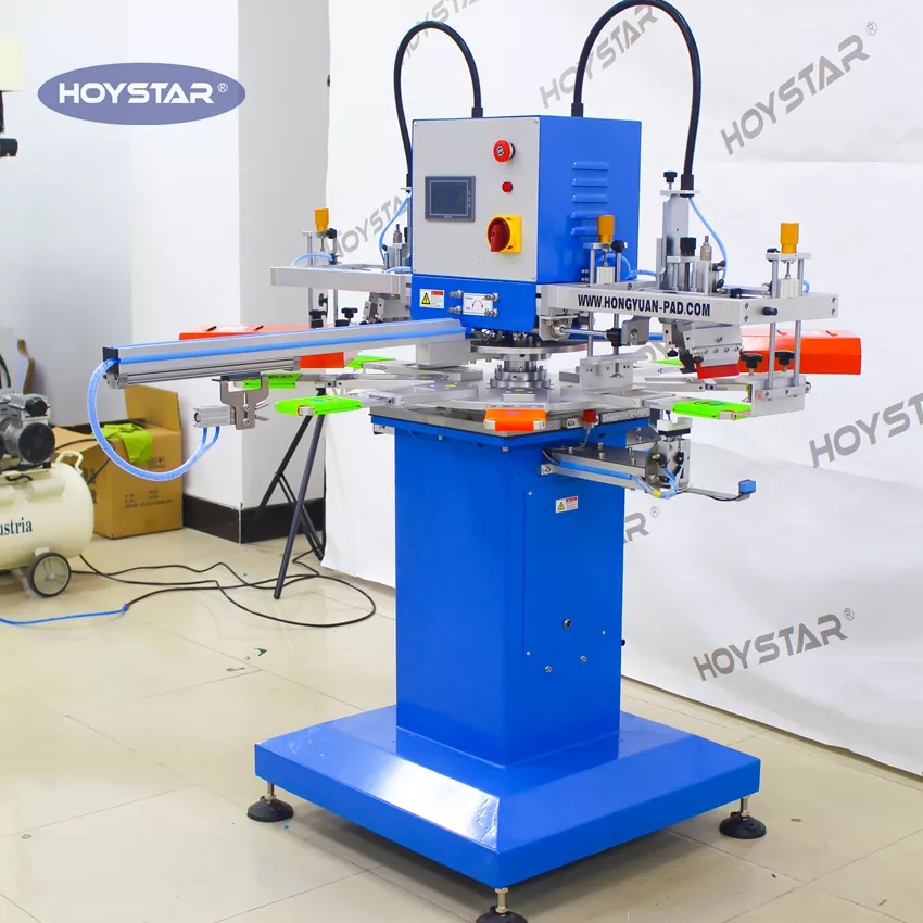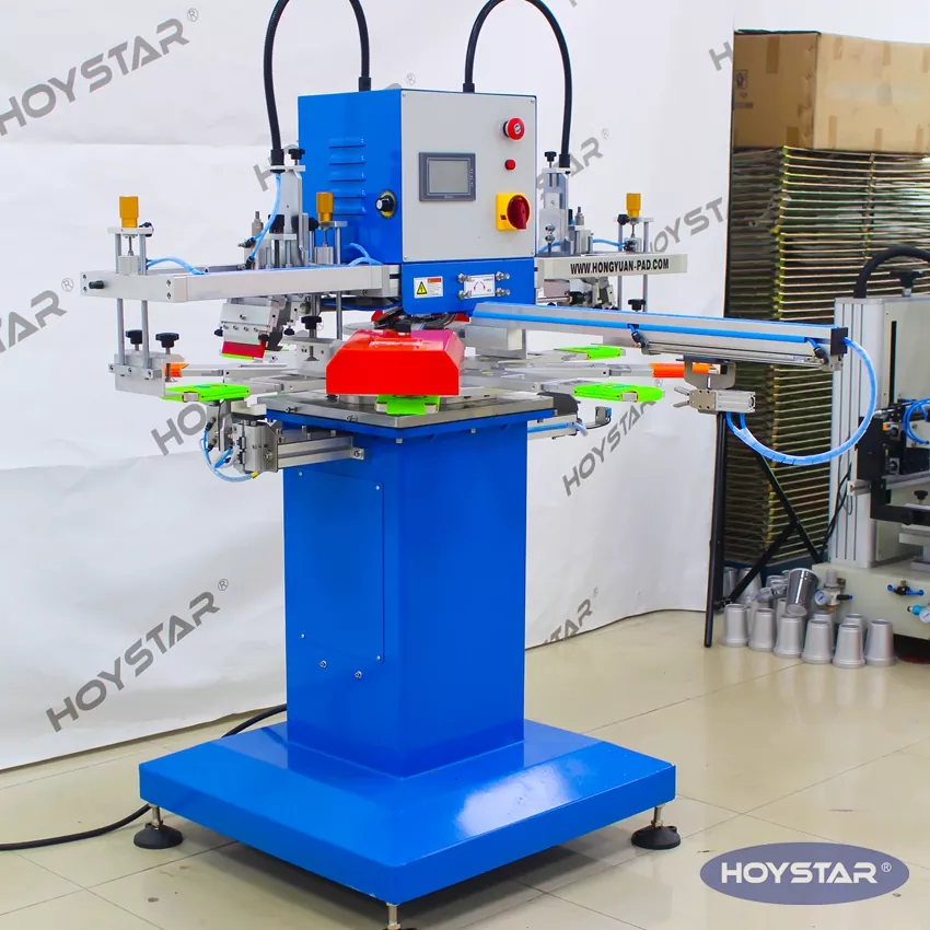 HOYSTAR - Қытайдағы сенімді өндіруші және жеткізуші; Бұл HOYSTAR 2 түсті автоматты консерві салқындатқыш коозис экранды басып шығару машинасы Тамақ және орау өнеркәсібіне жарамды, қышқылдар мен консервілерді салқындатқыштарға мамандандырылған, бұл автоматты экранды басып шығару машинасы бүкіл екі жақты басып шығару процесін біркелкі автоматтандырады. Жүктеуден басып шығаруға, кептіруге, 180 градусқа айналдыруға, екінші жақты басып шығаруға және соңғы түсіруге дейін