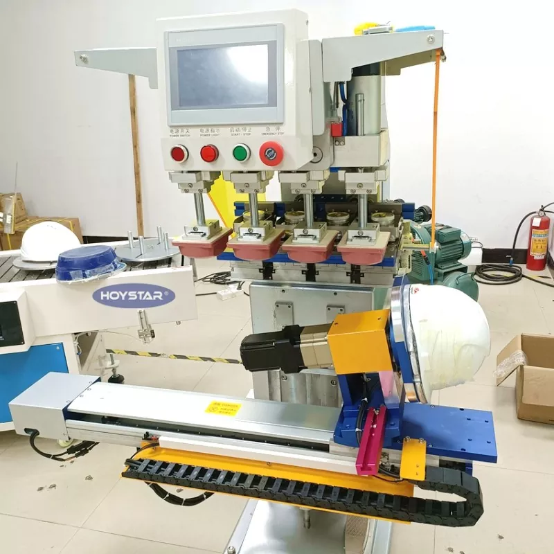 Қытайдағы кәсіпқой өндіруші ретінде біз сізге қауіпсіздік дулығасында басып шығару үшін арнайы жасалған дулығаға арналған жоғары тиімді HOYSTAR 4 түсті төсеніш басып шығару машинасын ұсынғымыз келеді. Біздің машина толығымен автоматты, автоматты азықтандыру, автоматты плазмалық өңдеу, автоматты басып шығару, автоматты кептіру және автоматты түсірумен жабдықталған. Құрылғыны басқару өте оңай және тұрақты басып шығару өнімділігі бар.