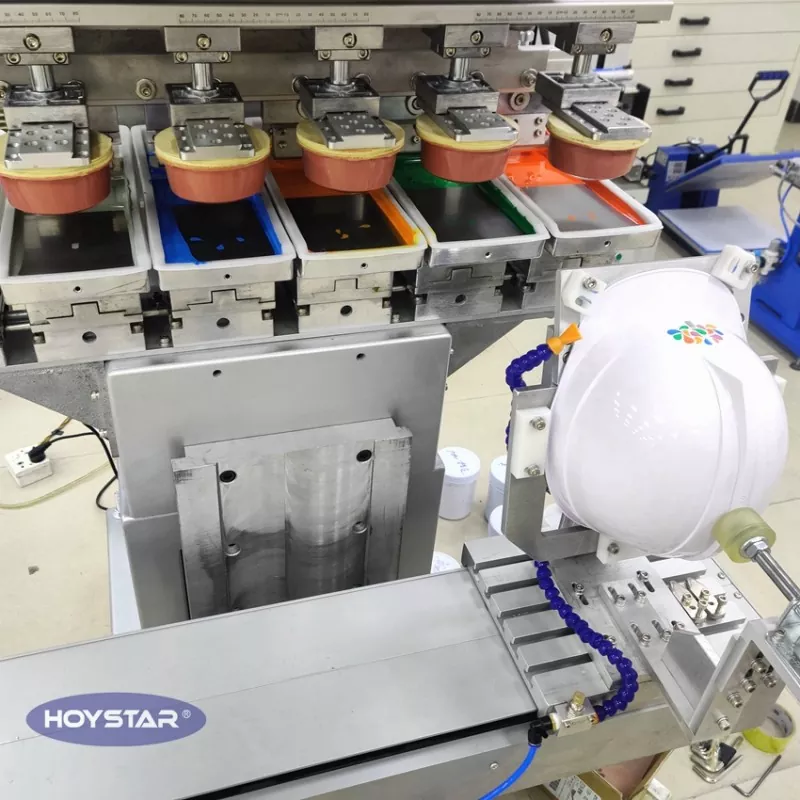 Қытайдағы кәсіби өндіруші ретінде біз сізге қауіпсіздік дулығасында басып шығару үшін арнайы жасалған жоғары тиімді HOYSTAR 6 түсті қауіпсіздік дулыға төсеніштерін басып шығару машинасын ұсынғымыз келеді. Бір өндірістік циклде 6 түсті басып шығаруды аяқтау үшін жасалған, қайта орнатудың қажеті жоқ және өндіріс уақытын айтарлықтай қысқартады. Қатты қалпақтардан басқа, оның икемді дизайны қорғаныс дулығалары, пластикалық құрал қаптамалары және қатты қабықшалы шағын аксессуарлар сияқты әртүрлі пішінді өнімдерде біркелкі басып шығаруға мүмкіндік береді.