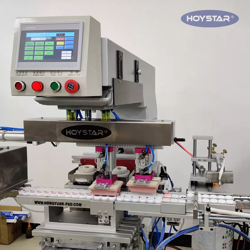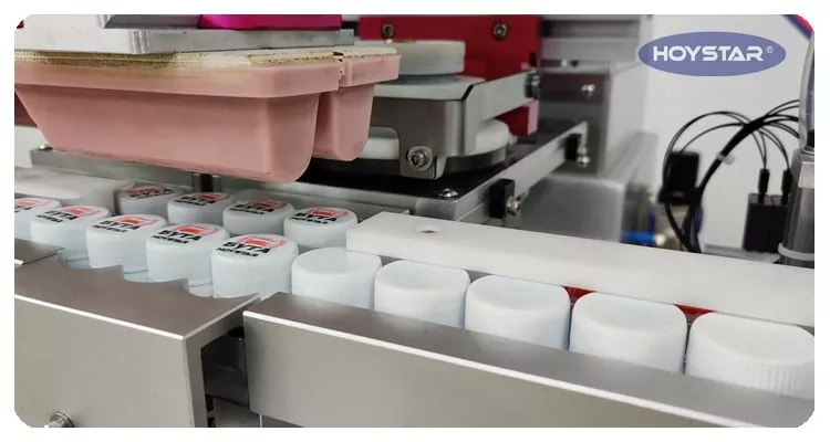 Қытайдағы кәсіби өндіруші ретінде біз сізге бөтелке қақпақтарына басып шығару үшін арнайы жасалған жоғары тиімді HOYSTAR автоматты 2 түсті бөтелке қақпақтарын басып шығару машинасын ұсынғымыз келеді. Біздің машина толығымен автоматты, автоматты беру, автоматты жалынмен өңдеу, автоматты басып шығару, автоматты кептіру және автоматты түсірумен жабдықталған. Құрылғыны басқару өте оңай және тұрақты басып шығару өнімділігі бар.