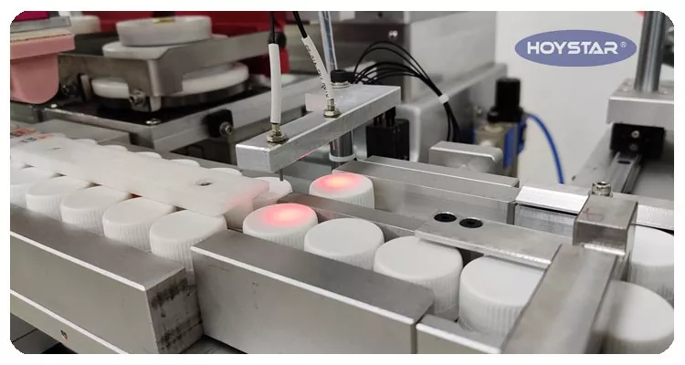 Құрылғы бөтелке қақпағының беттерінде сияның адгезиясын күшейтіп, басып шығару беріктігін арттыру үшін жалынмен өңдеу жүйесімен конфигурацияланған.