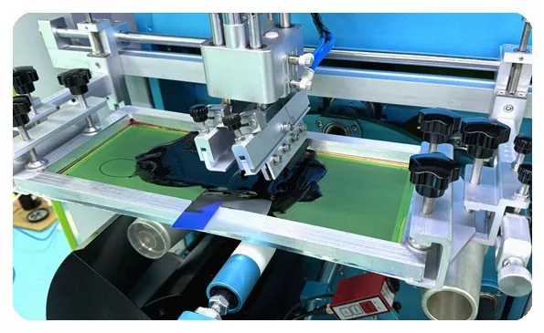 6. Экран жақтауы ұстағышының төрт бұрышы реттеледі, ол басып шығару кезінде біркелкі сия қабатының қалыңдығын қамтамасыз ете отырып, экран жақтауы мен жұмыс үстелі арасындағы тепе-теңдікті сақтайды.