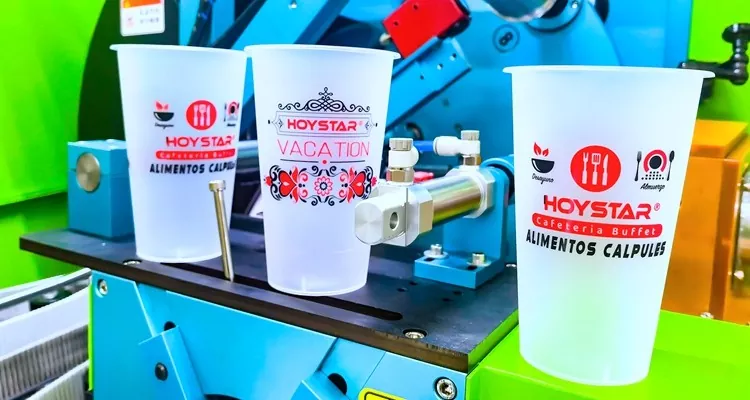 Бұл HOYSTAR толық автоматты көп түсті пластикалық шыныаяқтарды экранды басып шығару машинасы кесе түрлерінің кең ауқымымен басып шығаруға жарамды. Ол пластикалық шыныаяқтарға (мысалы, салқын сусындарға арналған пластик шыныаяқтар), сүт шайы шыныаяқтарына (қоғамдық тамақтандыру өнеркәсібінде жиі қолданылатын қағаз және пластикалық нұсқаларды қоса), кофе шыныаяқтарына, қағаз шыныаяқтарға, шыныаяқтарға және қайта пайдалануға болатын шыныаяқтарға (экологиялық таза қайта пайдалануға болатын пластик шыныаяқтар) басып шығару үшін жарамды.