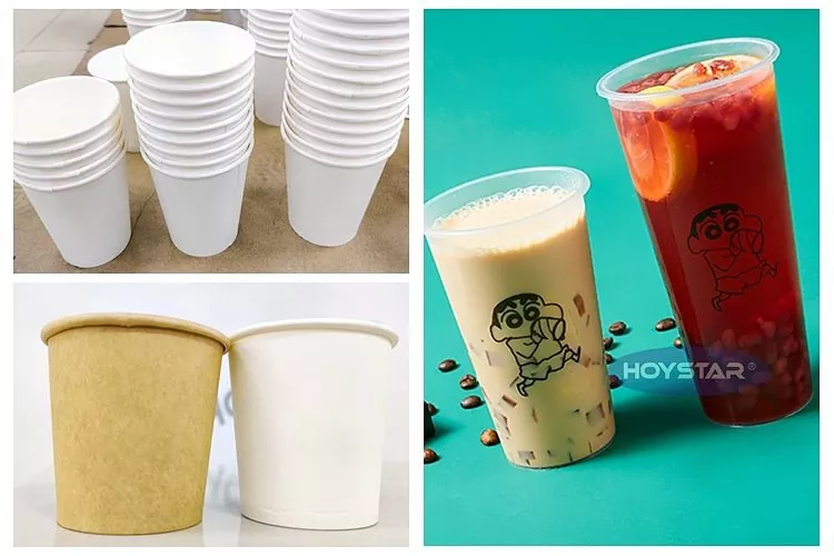 Бұл HOYSTAR толық автоматты 1 түсті цилиндрлік экранды басып шығару машинасы PP/PET шыныаяқына арналған кесе түрлерінің кең ауқымымен басып шығаруға жарамды. Ол пластикалық шыныаяқтарға (мысалы, салқын сусындарға арналған пластик шыныаяқтар), сүт шайы шыныаяқтарына (қоғамдық тамақтандыру өнеркәсібінде жиі қолданылатын қағаз және пластикалық нұсқаларды қоса), кофе шыныаяқтарына, қағаз шыныаяқтарға, шыныаяқтарға және қайта пайдалануға болатын шыныаяқтарға (экологиялық таза қайта пайдалануға болатын пластик шыныаяқтар) басып шығару үшін жарамды.