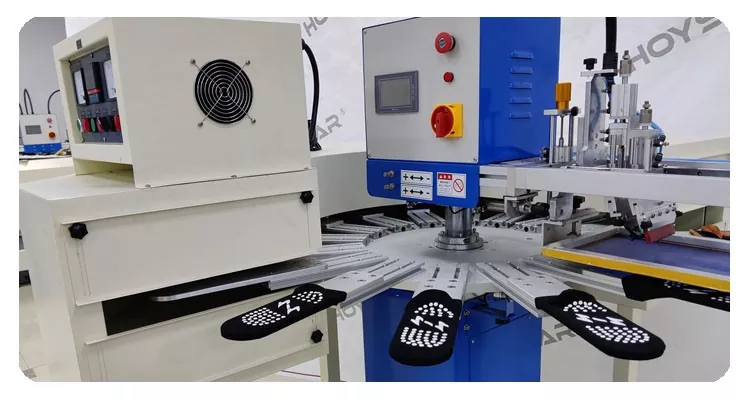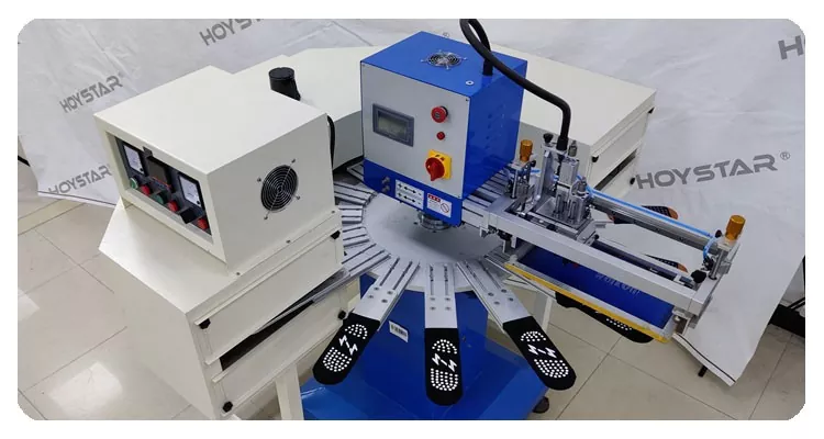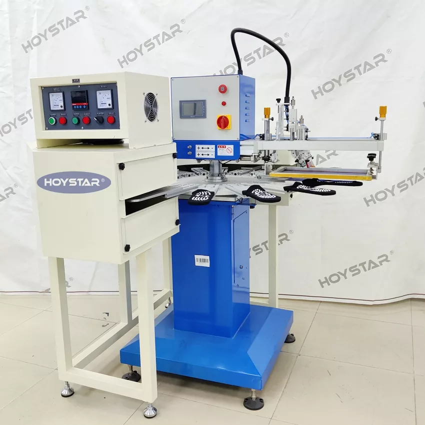 Қытайдағы кәсіби өндіруші ретінде біз сізге жоғары жылдам HOYSTAR үлкен өлшемді шұлықтар жібек экранды басып шығару машинасын ұсынғымыз келеді. Бұл жоғары көлемді өндіріске жарамды 16 жұмыс станциясы машинасымен келеді. Ол жетілдірілген PLC және сенсорлық экранды басқару шұлықтың табаны мен өкшесін басып шығара алады. Біріктірілген ИК кептіру туннелі кремний мен сияны тиімді кептіруді қамтамасыз етеді
