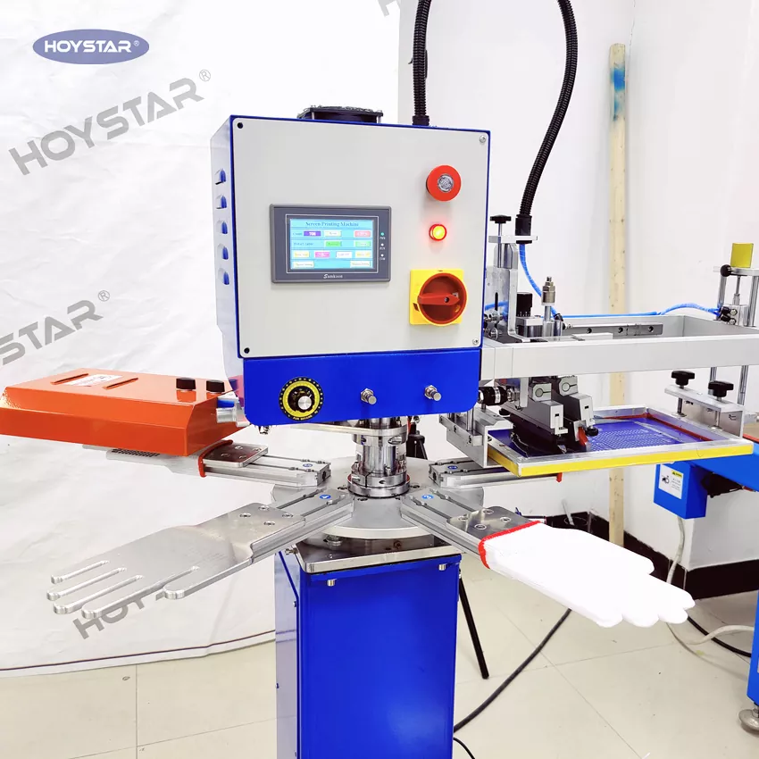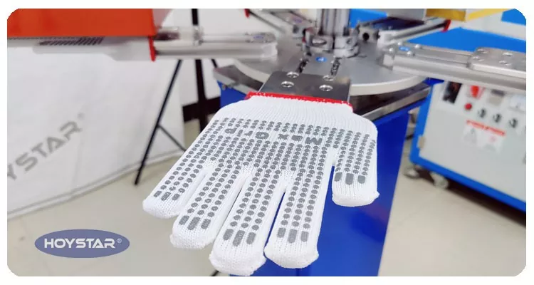 Кәсіби өндіруші және жеткізуші ретінде HOYSTAR жоғары жылдам сырғанамайтын қолғаптар экранды басып шығару машинасы тоқыма тоқыма өнеркәсібіндегі қолданбаларға арналған. 1000PCS/сағ жылдамдықпен жұмыс қолғаптарын, мақта қолғаптарын, тоқылған қолғаптарды және т.б. басып шығаруға жарамды. Айналмалы жұмыс үстелімен жабдықталған, қолғаптарды тиеу және түсіру өте ыңғайлы. PLC сенсорлық экранды басқару, басқару өте оңай. Кептіру жүйесімен жабдықталған машина кремний мен сияны жақсы құрғата алады.