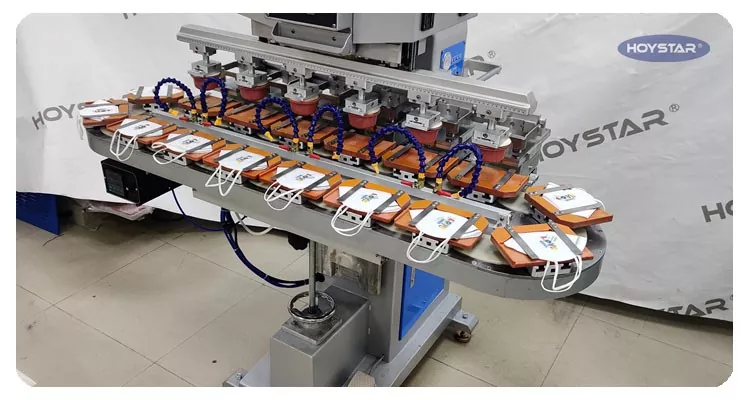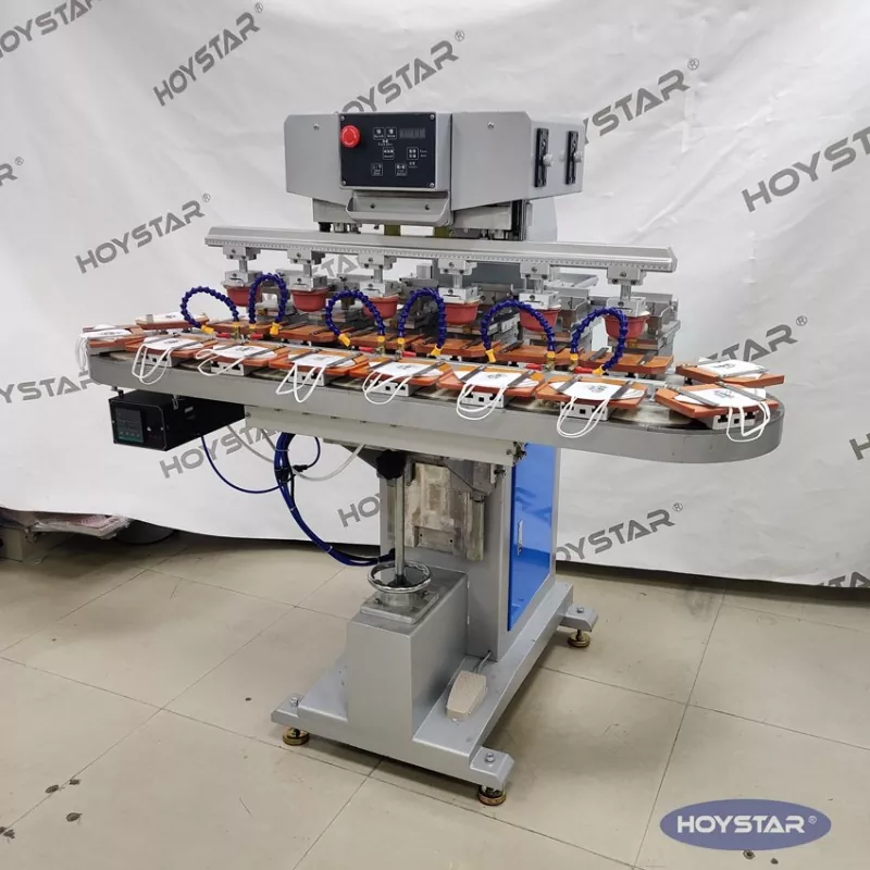 Қытайдағы кәсіпқой өндіруші ретінде біз сізге конвейерлік жұмыс үстелі бар жоғары тиімді HOYSTAR алты түсті төсеніш принтерін ұсынғымыз келеді. Бұл құрылғы өнімдер үшін бір түсті тіркеу бір циклде аяқталатын үздіксіз алты түсті қағазды басып шығаруға мүмкіндік береді. Бұл машина басып шығару процесінде өнімді үздіксіз және тегіс тасымалдауға, бір айналмалы циклде толық 6 түсті үстеме басып шығаруды аяқтауға мүмкіндік беретін айналмалы айналмалы конвейер жүйесін қолданады. Шаттл типті принтерлермен салыстырғанда оның жылдамдығы өте жылдам.