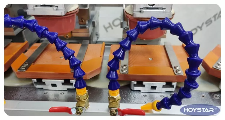 SCM (бір чипті микрокомпьютер) IC бар конвейерлі жұмыс үстелі бар алты түсті баспалы принтер әрекеттер ретін бағдарламалайды. Жартылай автоматты және автоматты режимдермен операторлар әртүрлі өндірістік қажеттіліктерге бейімделе алады.
