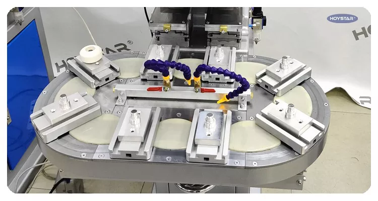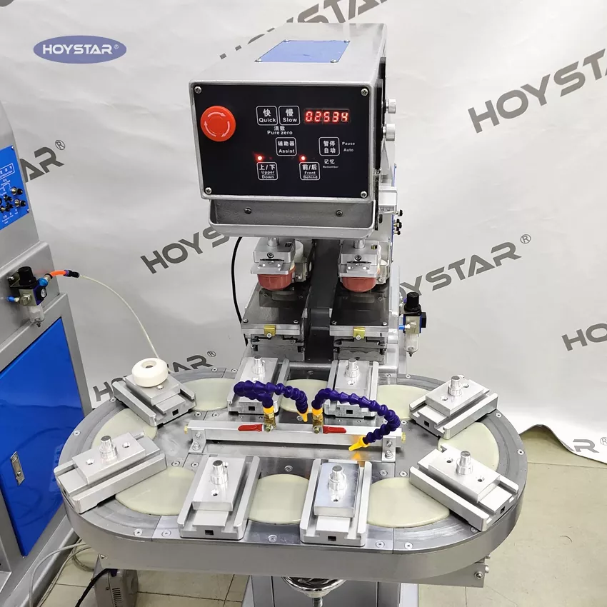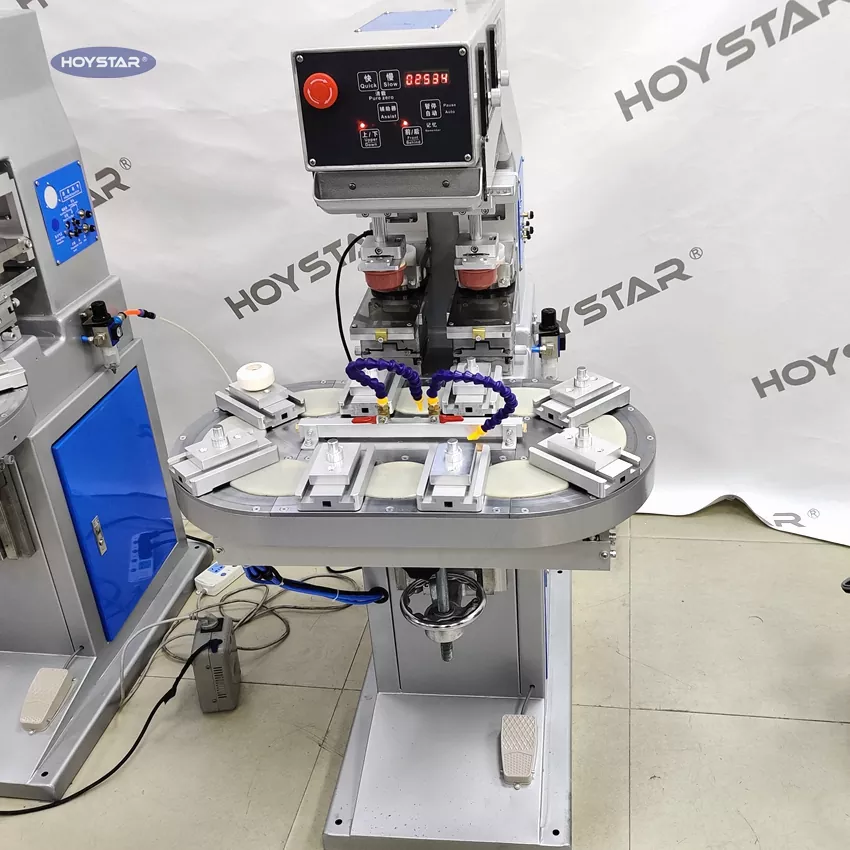 HOYSTAR - Қытайдағы сенімді өндіруші және жеткізуші; HOYSTAR екі түсті айналмалы үстел төсеніштерін басып шығару машинасы - жоғары қабілетті және үнемді басып шығару жабдығы. Құрылғы ыңғайлы реттеуді, тұрақты жұмысты және жақсы басып шығару әсерін ұсынады. Құрылғы тұрақты басып шығару сапасын қамтамасыз етеді және электронды өнімдер, пластик қабықтар, аппараттық бұйымдар, кеңсе тауарлары, шағын өнер және қолөнер бұйымдары, сондай-ақ сыйлықтар бетіндегі шағын логотиптер және т.б. сияқты заттардың кең ауқымын басып шығаруға жарамды. Клиенттердің әртүрлі екі түсті басып шығару талаптарын қанағаттандыра алады.